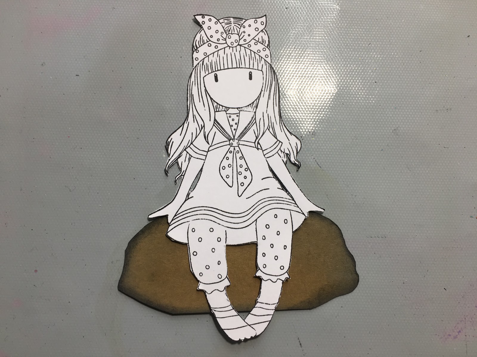 Next, I fussy cut the girl out to see how she was going to look on the rock.